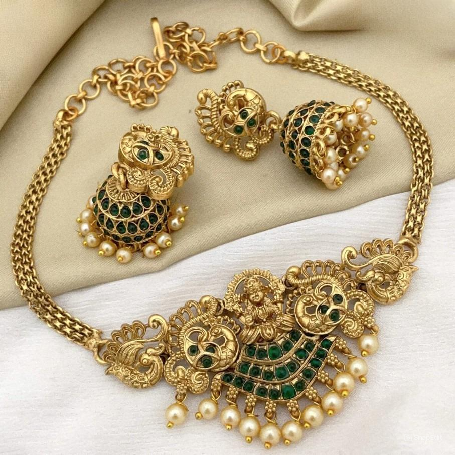 FANCY ANTIQUE TRADITIONAL and FASHIONABLE SOUTH INDIAN TEMPLE JEWELLERY SET and COPPER SOUTH NECKLACE SET for WOMEN NAD GIRLS