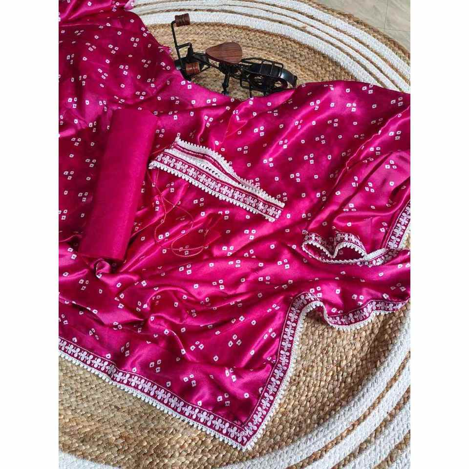 FANCY CHINON BANDHANI PRINT EMBROIDERY SEQUENCE WORK LACE SAREE WITH UNSTITCHED BLOUSE PINK