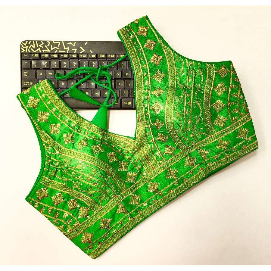 FANCY SILK THREAD ZARI SEQUENCE EMBROIDERY WORK READY to WEAR BLOUSE PARROT GREEN