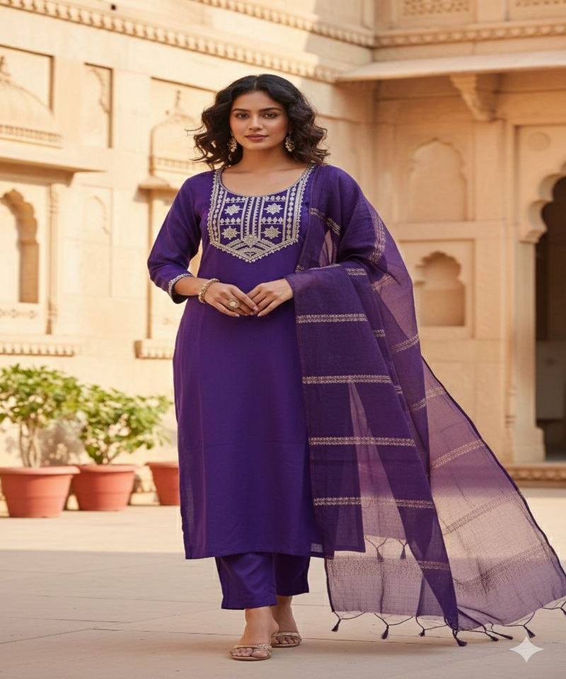 FANCY SLUB COTTON WEAVING WORK TOP BOTTOM with DUPATTA FESTIVE WEAR WHOLESALE PRICE IN-STOCK MULTI COLOR ETHNIC GARMENT