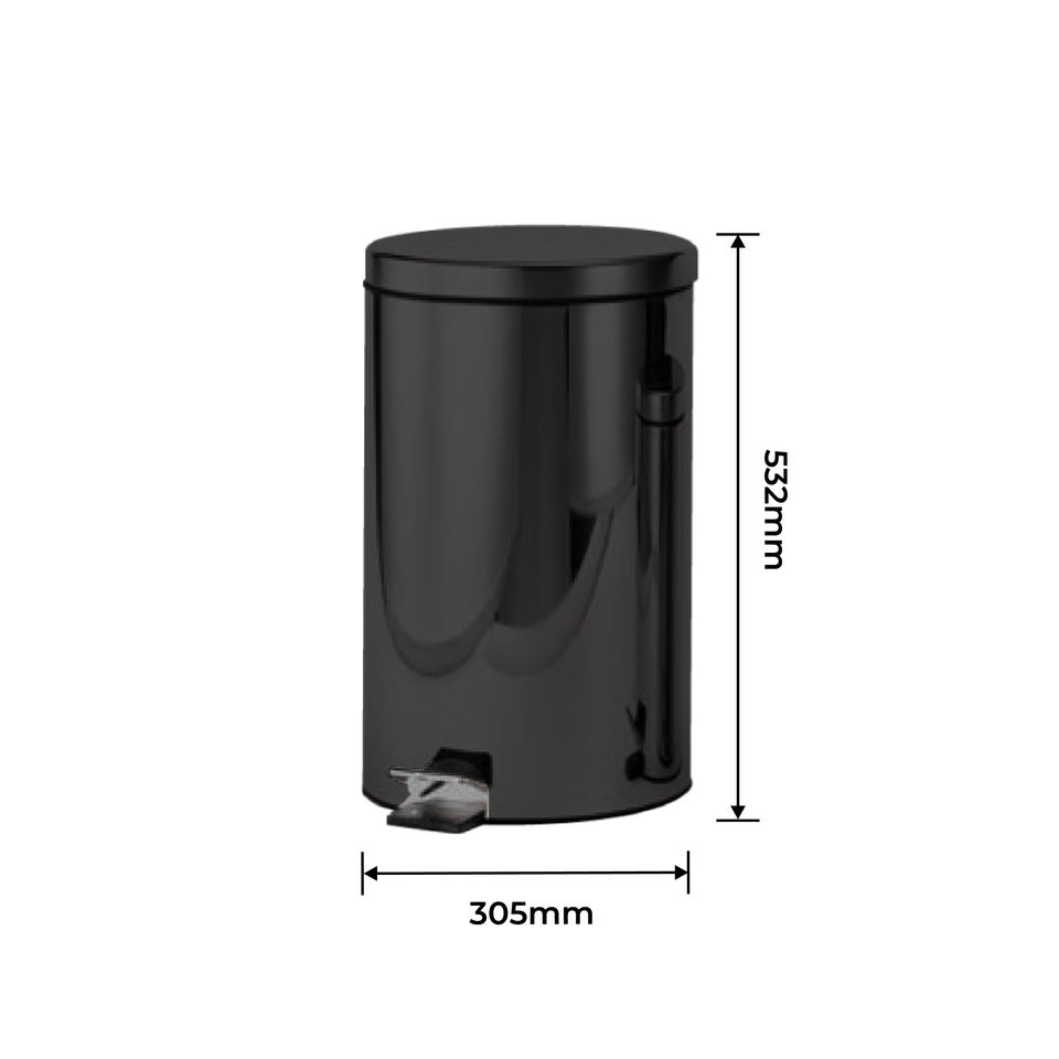 FANDA BLACK 12L STAINLESS STEEL PEDAL WASTE BIN
