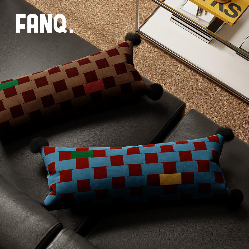 FANQ. Vintage Style Long Throw Pillow Lumbar Support Geometric Pattern Dutch Velvet Polyester Cushion Home Decor