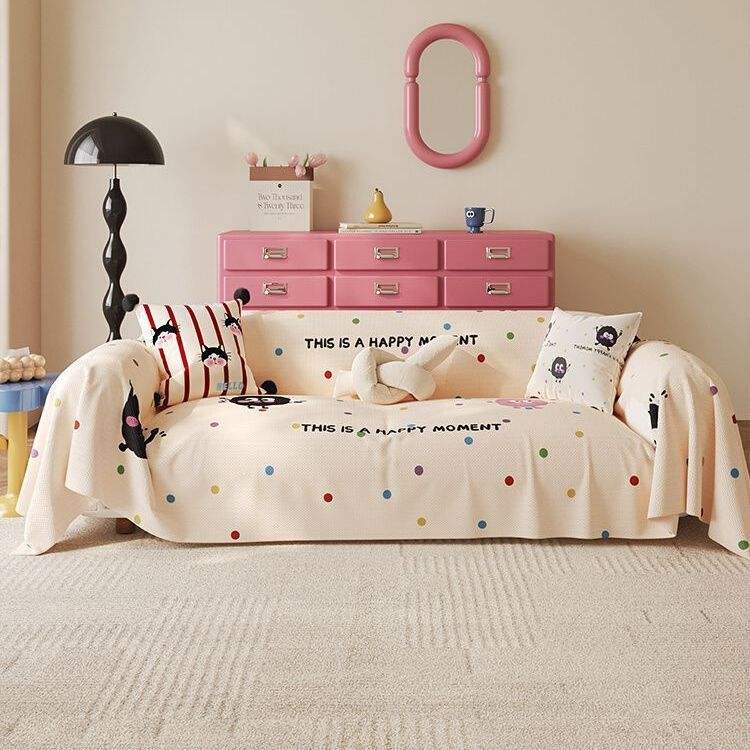 FANQUE INK Sofa Cover Pad Type Modular Sofa Printed Cute Cartoon Animals Imitation Linen Elastic Stretch Machine Washable