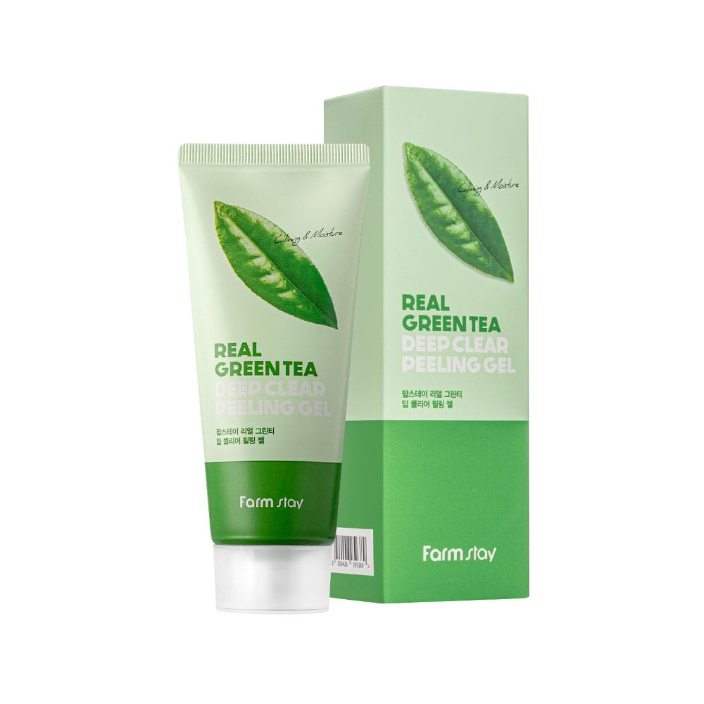 FARMSTAY REAL GREEN TEA CLEAR PEELING GEL - Made in Korea Cosmetic - Exfoliation Pore Scrub Blackhead Keratin Deep Cleansing
