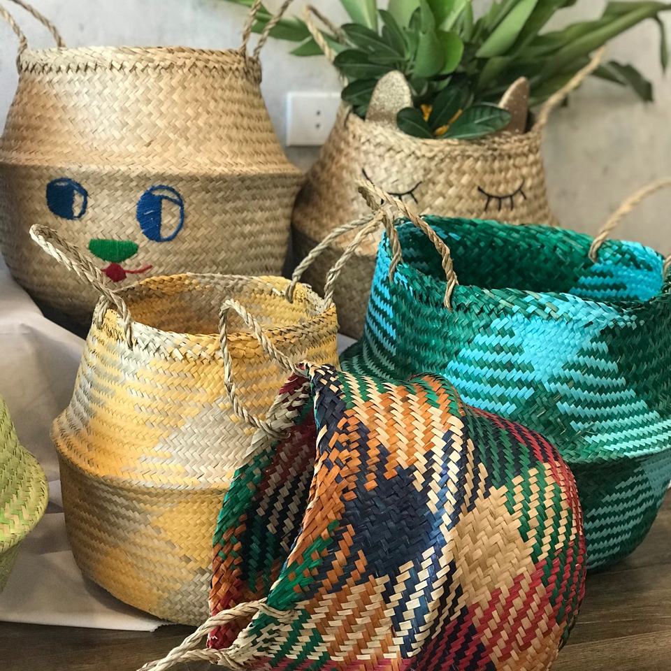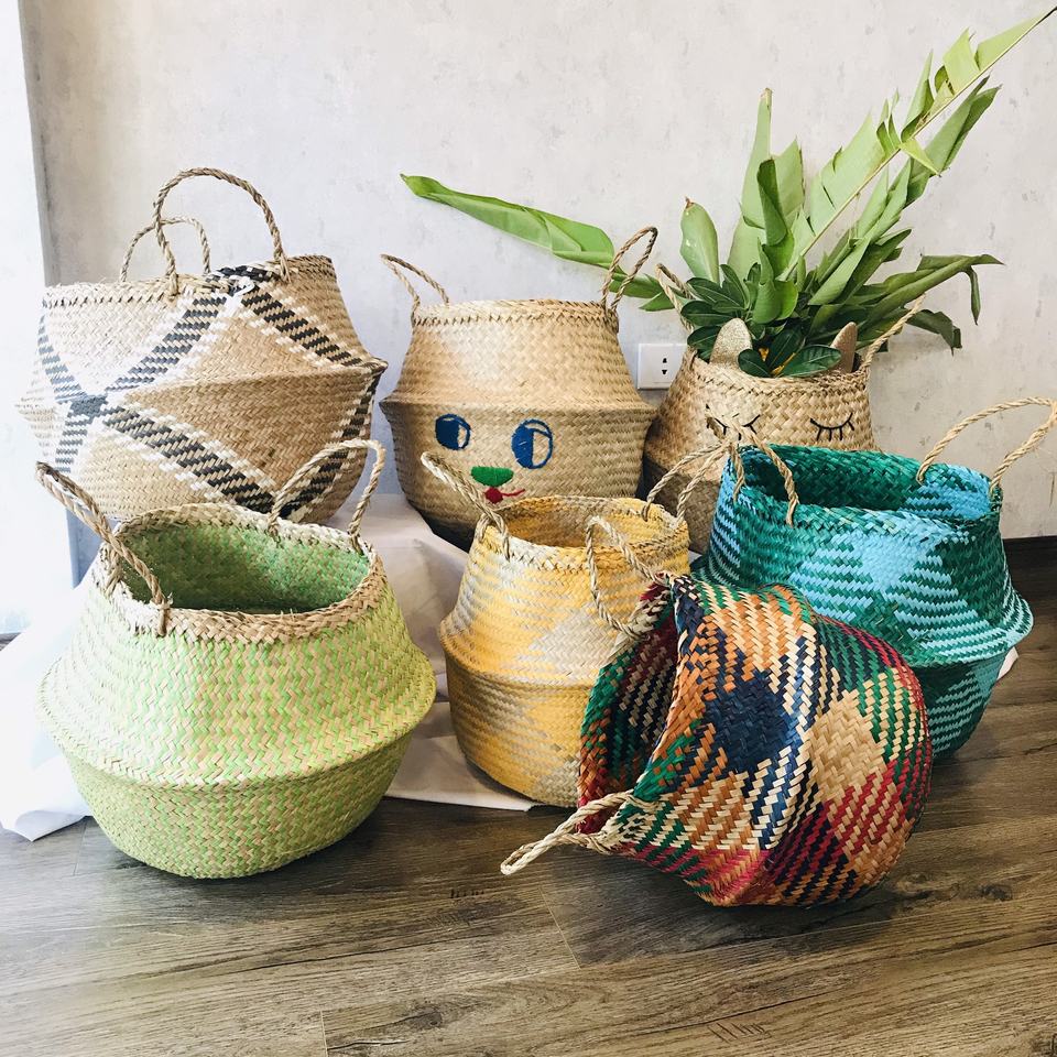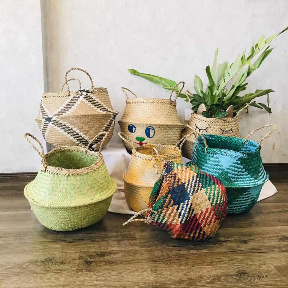 FASHIONABLE ALL TIME Foldable Seagrass Belly Storage Basket Home Storage & Organization