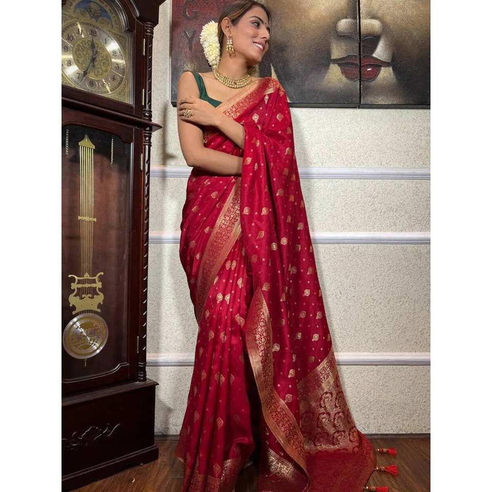 FASHIONABLE BANARASI SOFT SILK GOLD ZARI WEAVING WORK SAREE WITH UNSTITCHED BLOUSE RED
