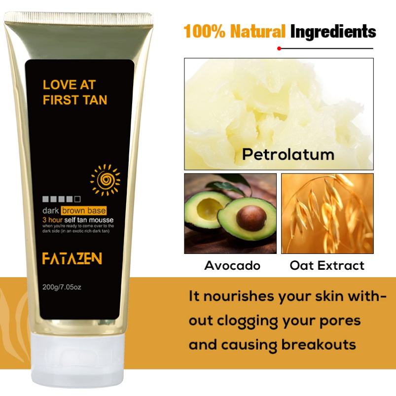 FATAZEN Organic Dark Brown Base Self Tan Lotion Sunscreen Tanning Cream Private Label Sunless Natural Black Skin Tanning Mousse