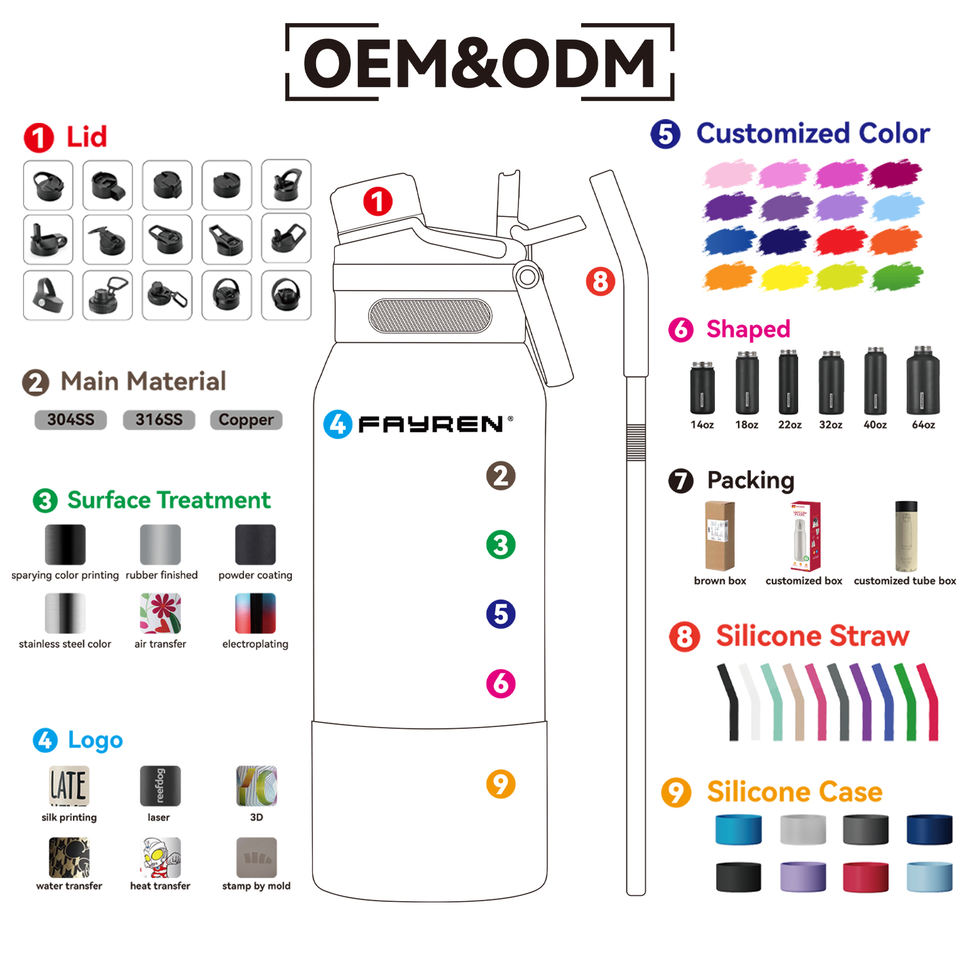 FAYREN New Designed Sport Drink Bottle Pop-up Straw Lid GYM Flask Double Wall Steel Water Bottle with Silicon Base