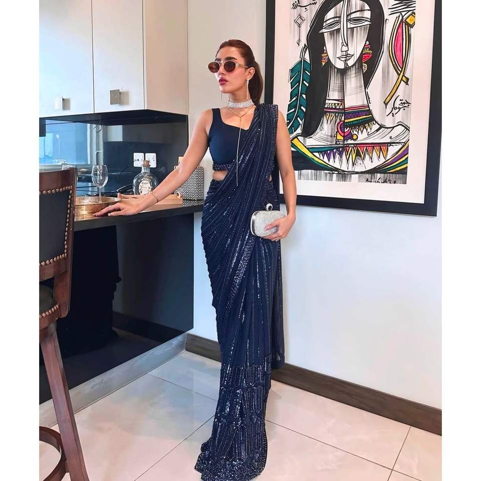 FB Navy Sequins Thread & Dori Work Evening Dress Party Wear Saree