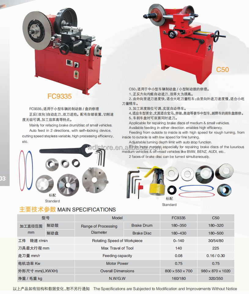 FC9335 Frequency Conversion and Adjustable Speed Brake Lathe Machine for Car, Truck and SUV in Stock