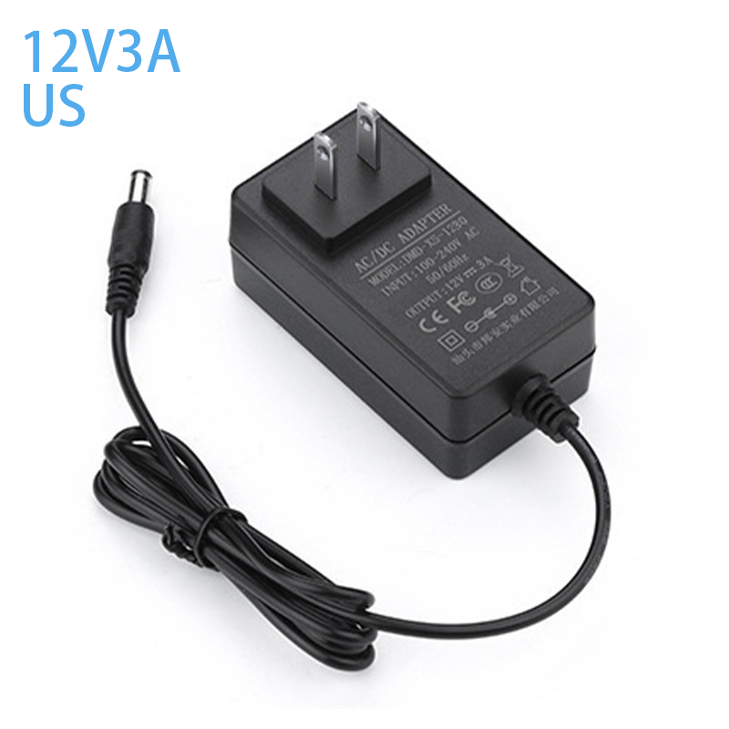 FCC Certified US Wall Plug DC Power Adapter 12V 3A 36W Plug in for Portable Monitor and Projector