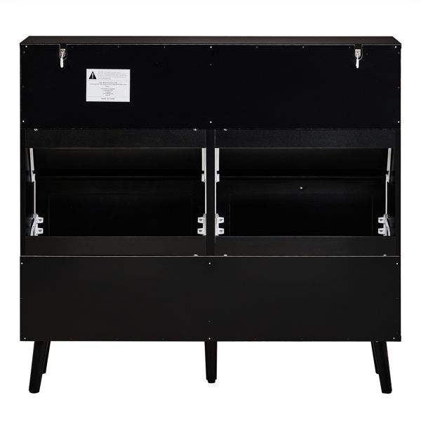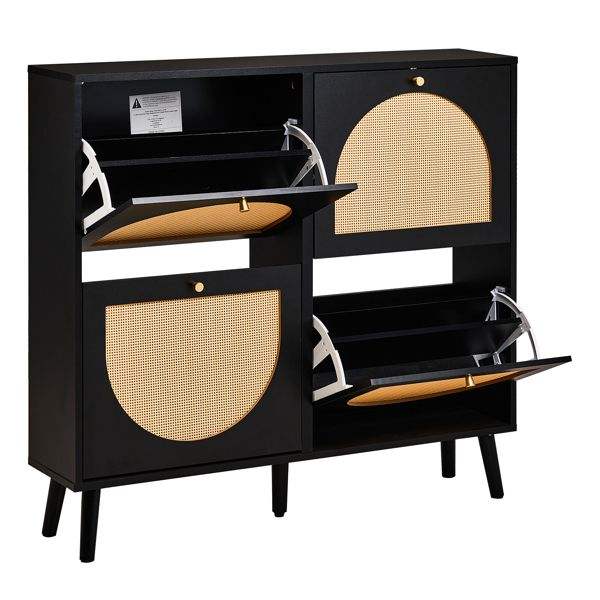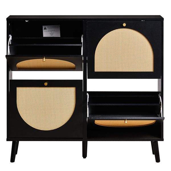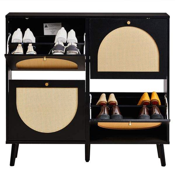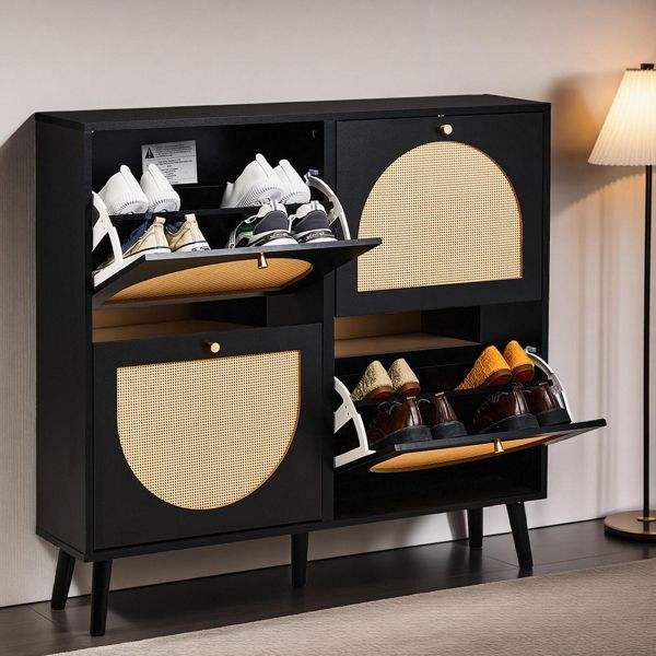 FCH High Feet Rattan Shoe Rack 2 Rows of 4 Dump Buckets 105*24*98cm Black Frame Particle Board + Plastic Rattan Cabinet