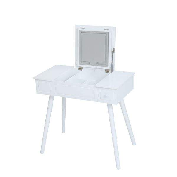FCH LED Mirror Vanity Table Set Flip Top Makeup & Writing Desk with Cushioning Stool 2 Drawers for Dressing up