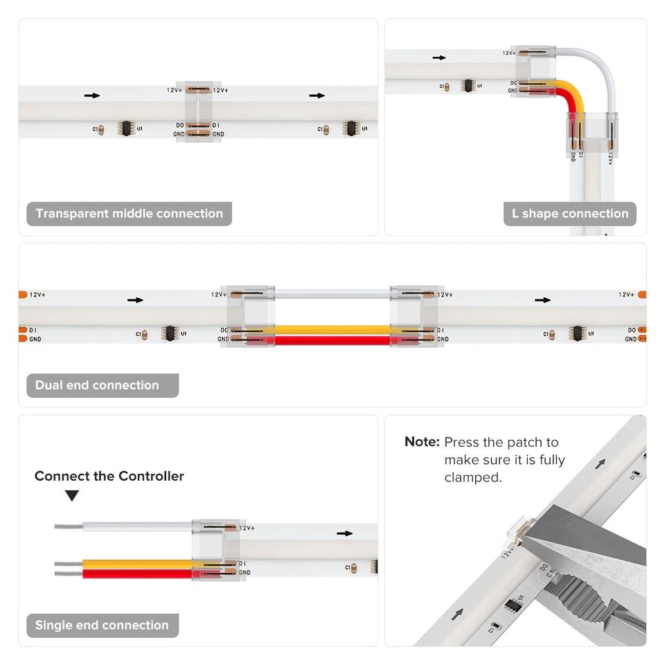 FCOB Series Transparent 3Pin 10Mm 12Mm Width Gapless Cob Solderless Led Connector