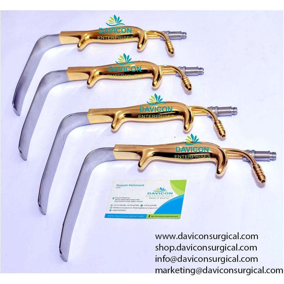 FERREIRA Style Manual Breast Retractor Gold Plated Steel and Metal Instrument for Plastic Surgery Fiber Optic Technology
