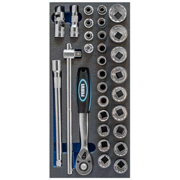 FERVI - TM01/023 Bi-hexagonal hand socket set in foam tray (30 pcs.) - EAN 8012667309152 OTHER TOOL SETS