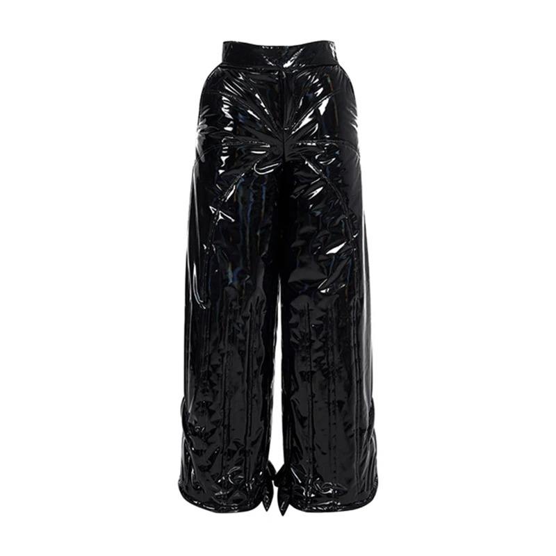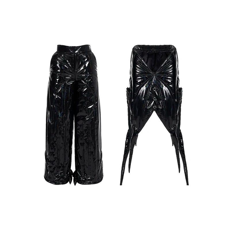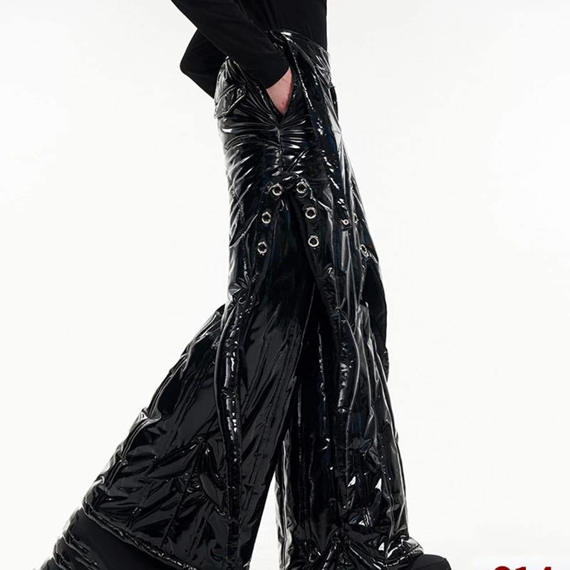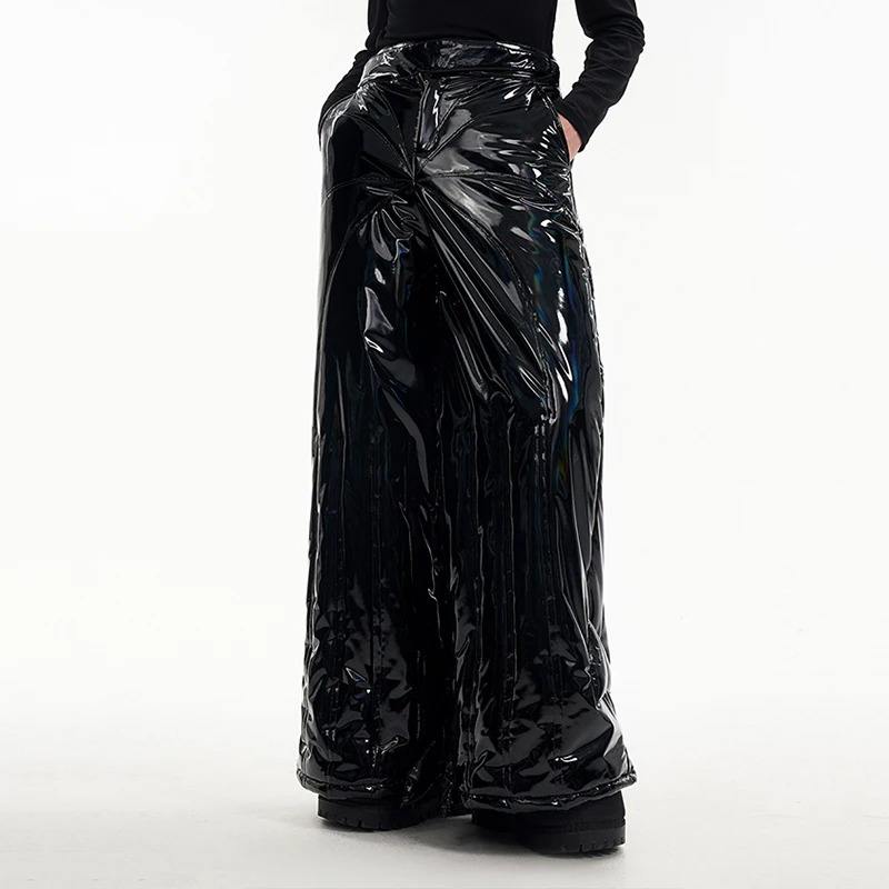 FEWQ Two Piece Stacked Bright Profile Leather High Quality Waterproof Windproof Casual Pants Men's Winter Warmth Trousers