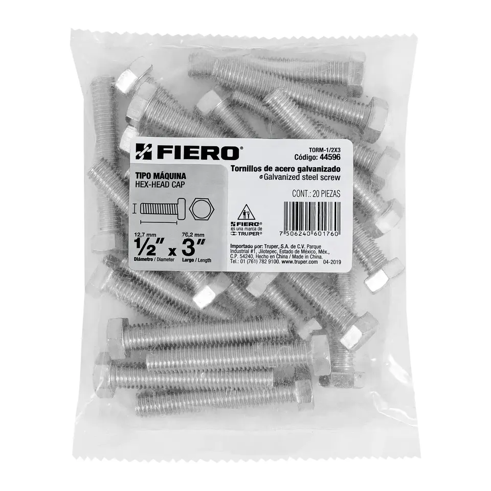 FIERO 20 1/2\" X 3\" Machine Screws Box with 3 Units Bag with 20 Units