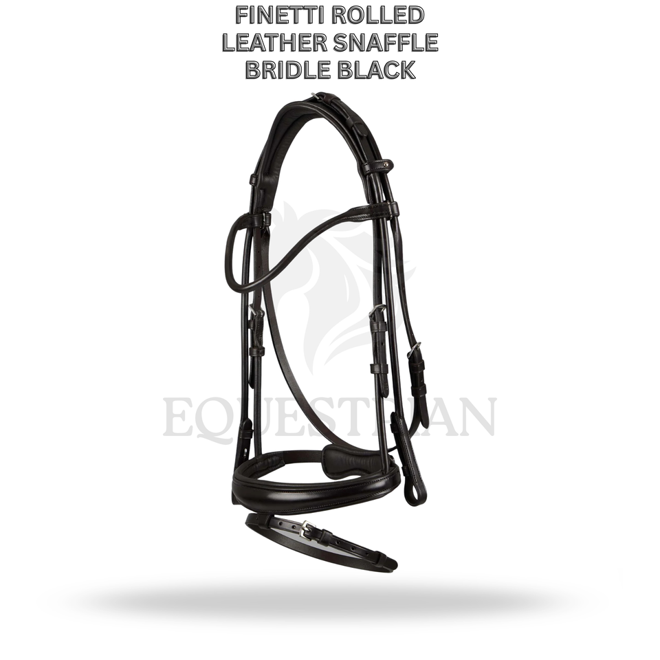 FINETTI ROLLED LEATHER SNAFFLE BRIDLE BLACK FULL SIZE ENGLISH RIDING BRIDLE FOR HORSE COMFORT