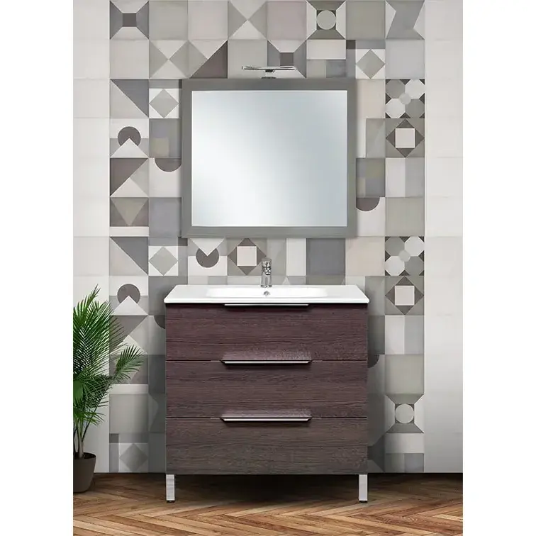 Bathroom freestanding cabinet FIRENZE, 3 drawers, 70cm, dark oak, ceramic sink
