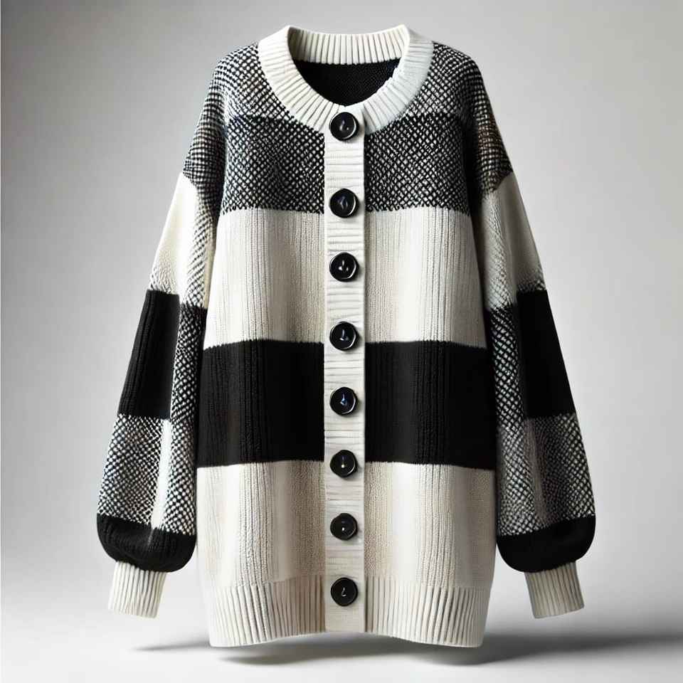 FISLEY INTERNATIONAL Women's Cartoon Print V-Neck Long Sleeve Cardigan Sweater Viscose/Cotton Blend Anti-Pilling Breathable