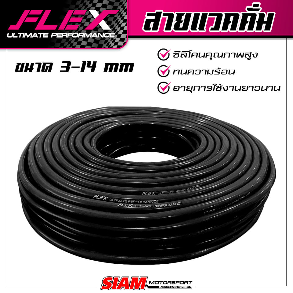 FLEX Vacuum Hose 50 m. / 1 Roll Made from high-quality silicone Black Color Product from Thailand