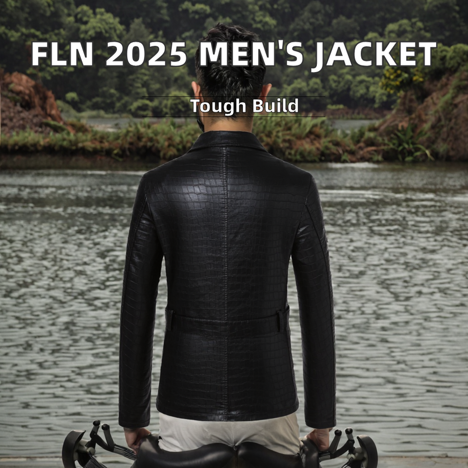 FLN 2025 Men's Vintage Winter Cowhide Biker Leather Jacket Plaid Front Hot Sale Nonwoven Finished Zipper Closure Breathable Thin