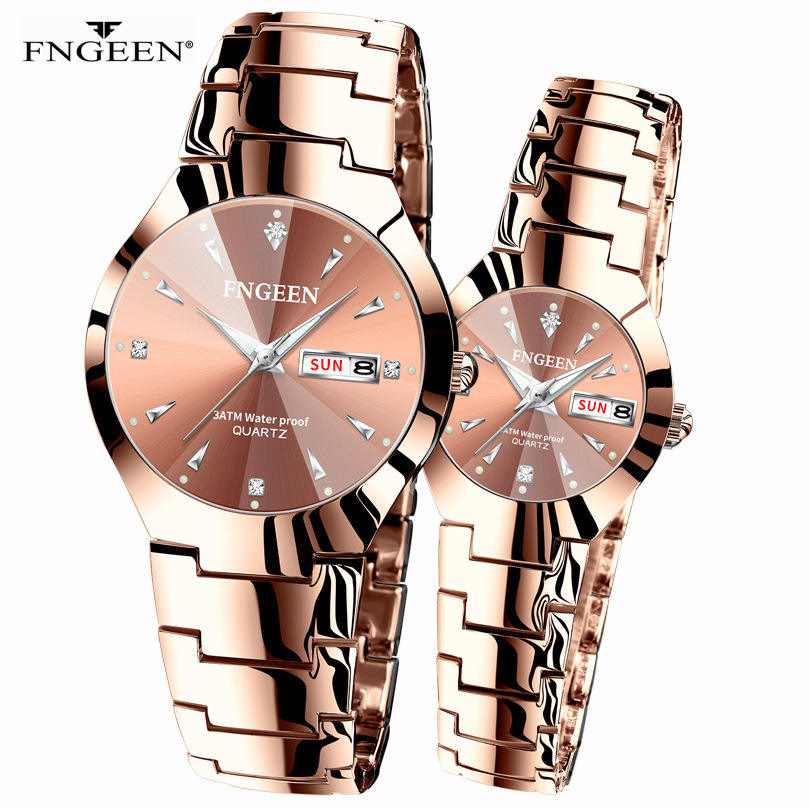 FNGEEN 5808 Business Couple Watches Shanghai Movement Waterproof Stainless Steel Band Quartz Watch