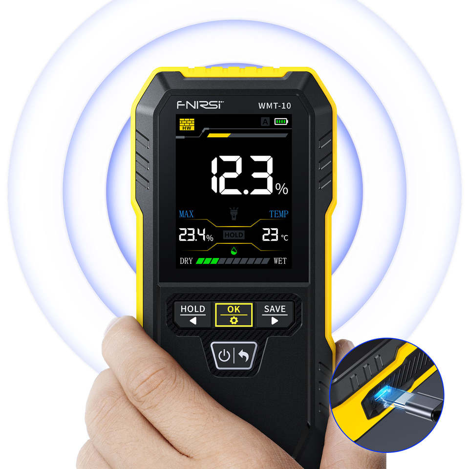 FNIRSI WMT-10 Inductive Wood Moisture Meter Hygrometer Non-contact Timber Damp Wall Detector Non-destructive Humidity Tester