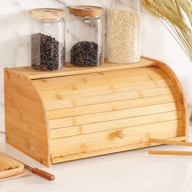 FOOD WOODEN RICE CONTAINERS STORAGE RICE Dispenser Rice Storage Containers with Sliding Lid and Measuring Cup