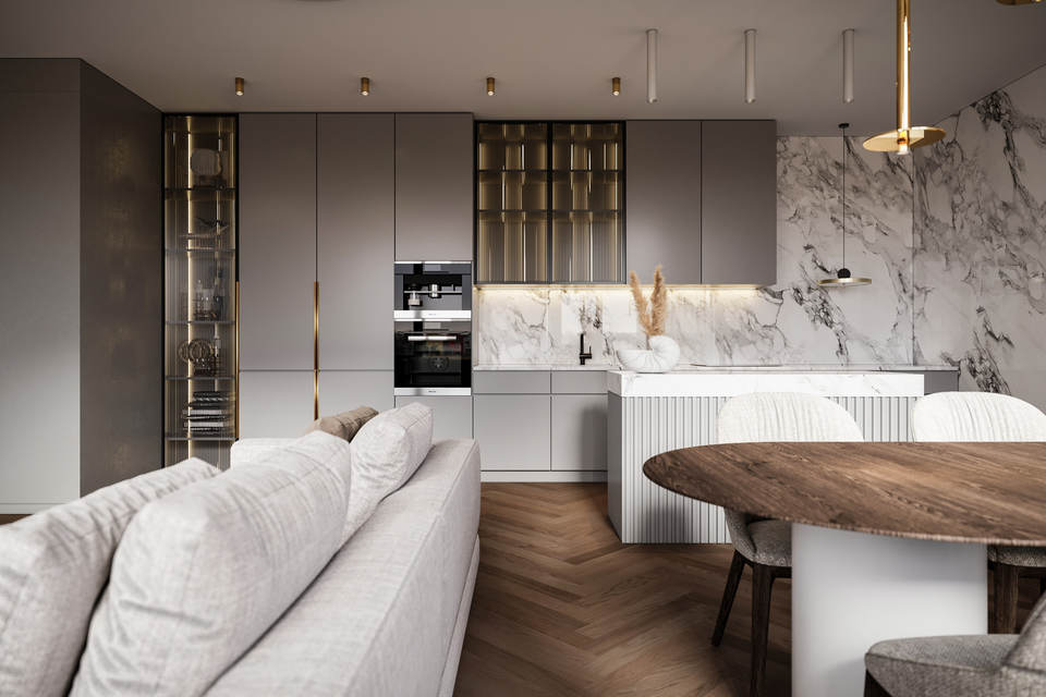 FOSHAN Hot Sales High-end Custom Fluted Panel Kitchen Cabinet FLUTED Shape Design Minimalism Smart Kitchen Cabinets With Island