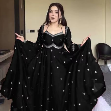 FOUX GEORGETTE Vintage Floral Summer Floor-Length ANARKALI PENT Dupatta Suit Embroidery Sequences Natural Waist V-neck Loose Fit