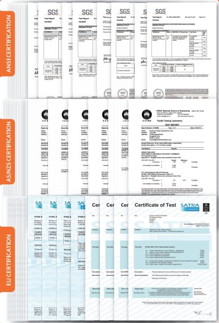 Pilling resistance, Workwear, color fastness to light, color fastness to laundering, protection for clothes