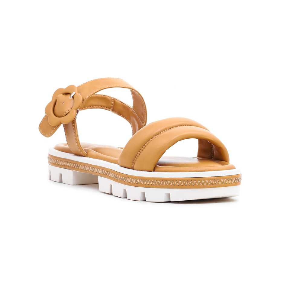 FR5161 Mustard Denim Open Toe Formal Sandal Comfortable Flat Platform for Parties Stylish & Sexy Design with Sheepskin Insole