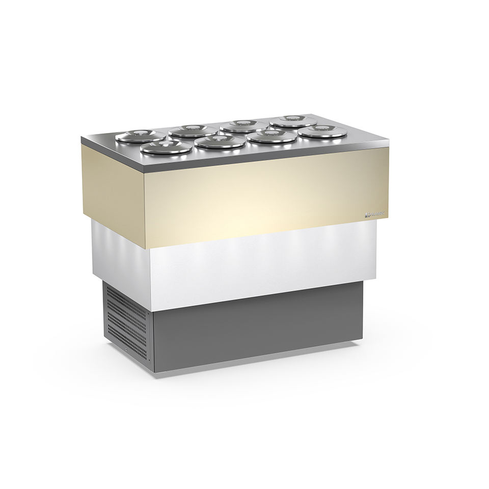 FRAMEC Pozzetto Scoop Ice Cream Fridge Cabinet Refrigerator Freezer With Cylindrical Tubes 8+8 1180 X 724 X 976 mm