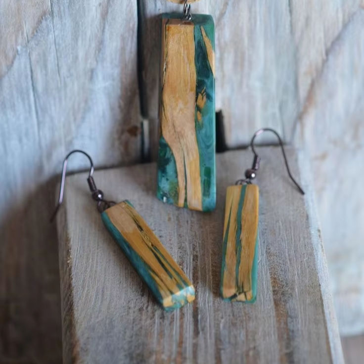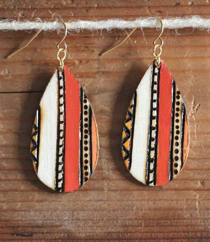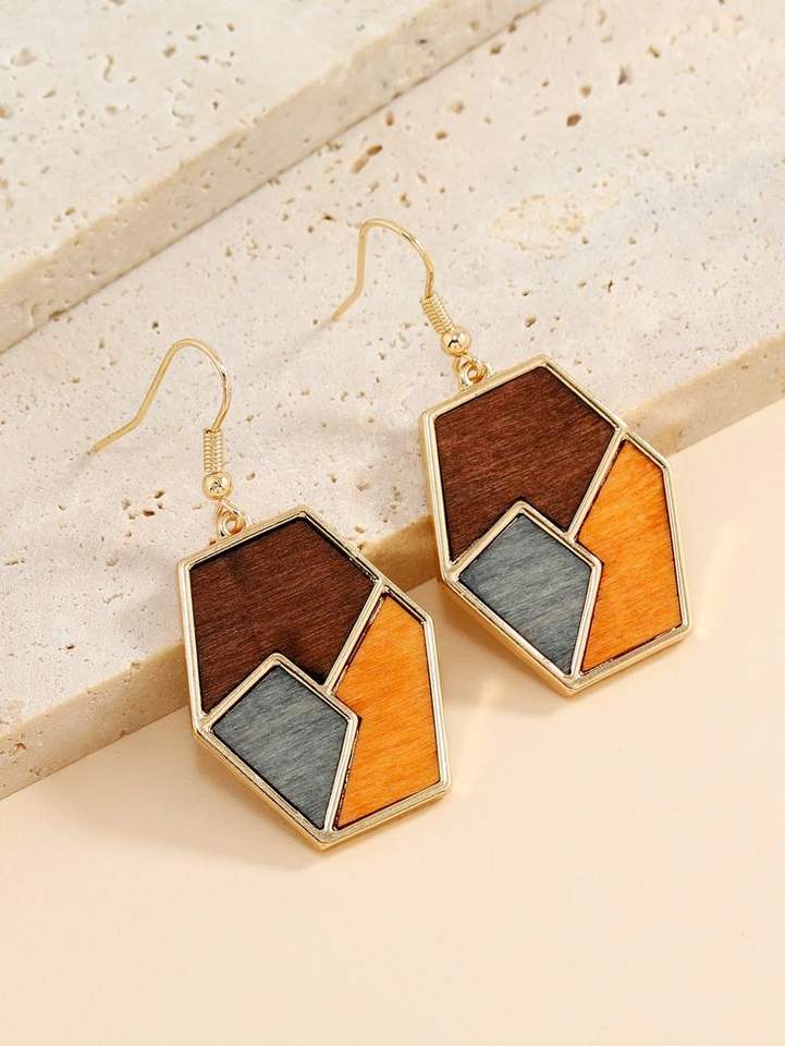 FRIENDLY Gold Foil Black White Resin Heart Shape Earrings Square Round Geometric Wooden Resin Drop Earrings