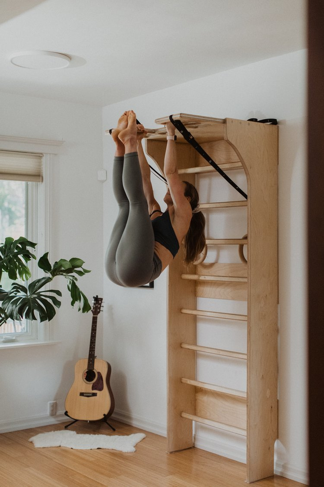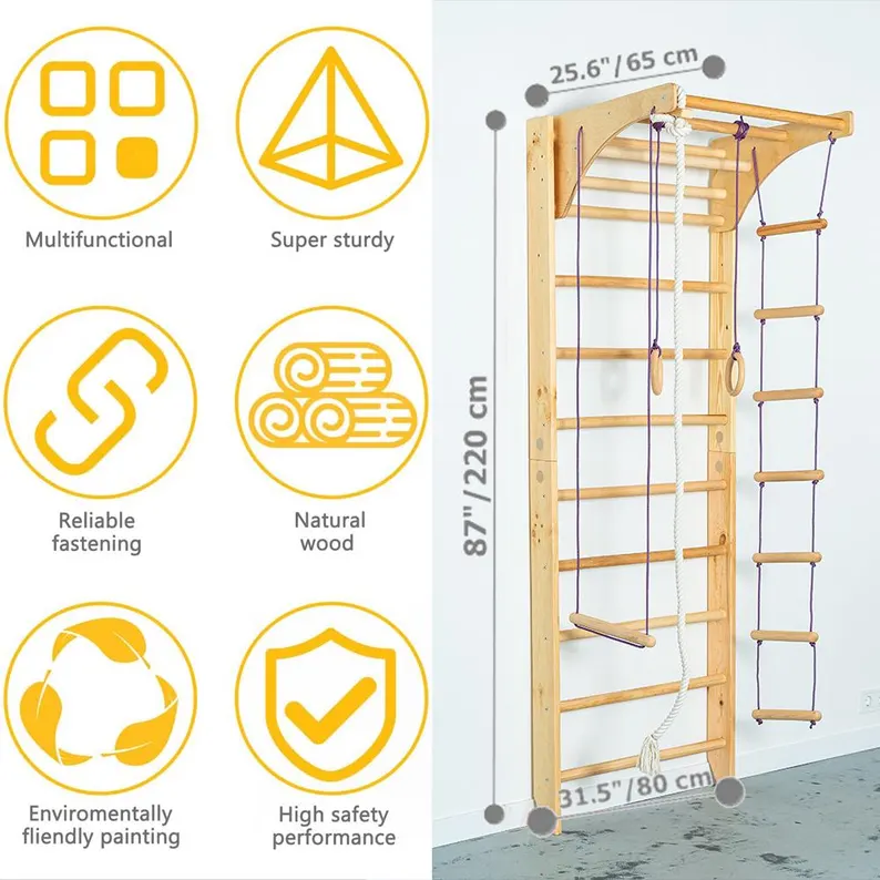 FSC BSCI factory customized Hot Sale Body Stretching Wall Mounted Wooden Fitness Pull up Bar Swedish Ladder