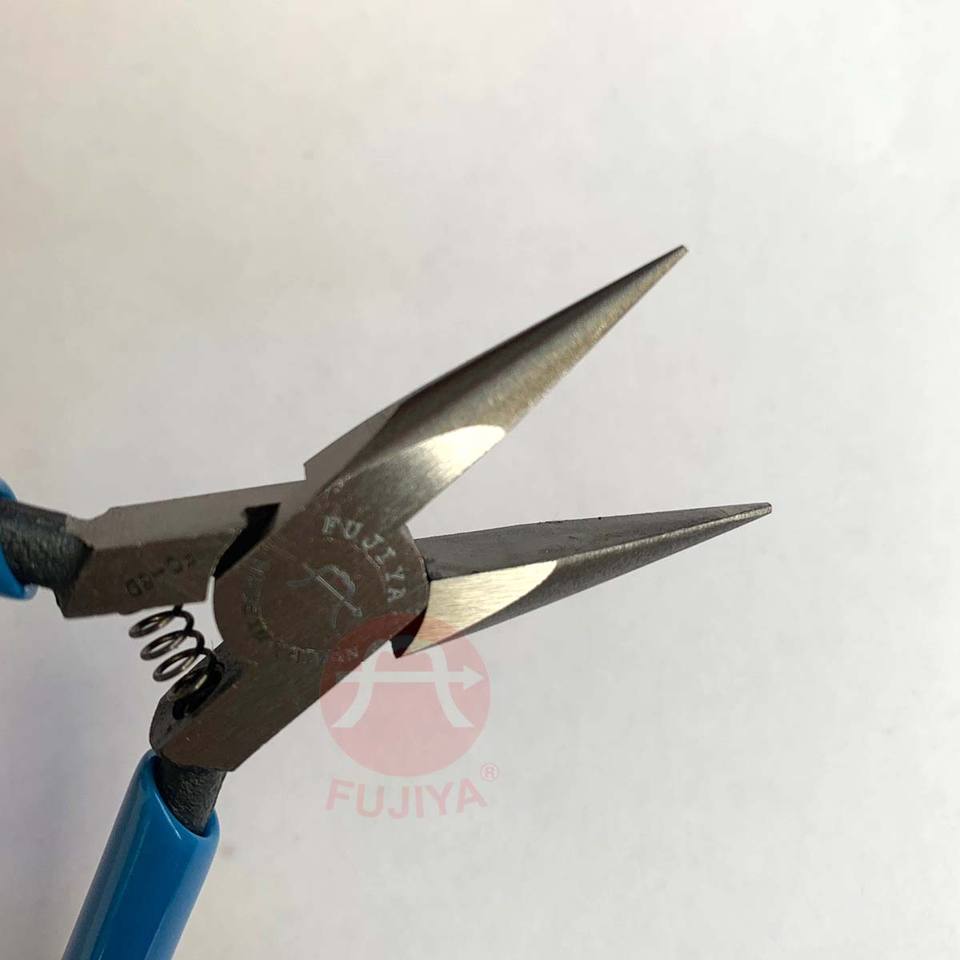 FUJIYA Mini Nose Pliers for Jewelry Making Clamping Tool with Serrated Jaw Surface and Soft Grip Plastic Handle Steel Material
