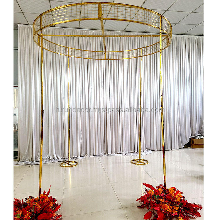 FURUN Adjustable Gold White Metal Background Frame Circular Wedding Arch Stand Flower Balloon Support Pavilion for Ceremony