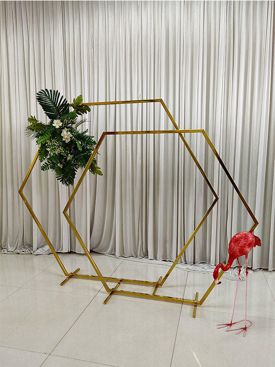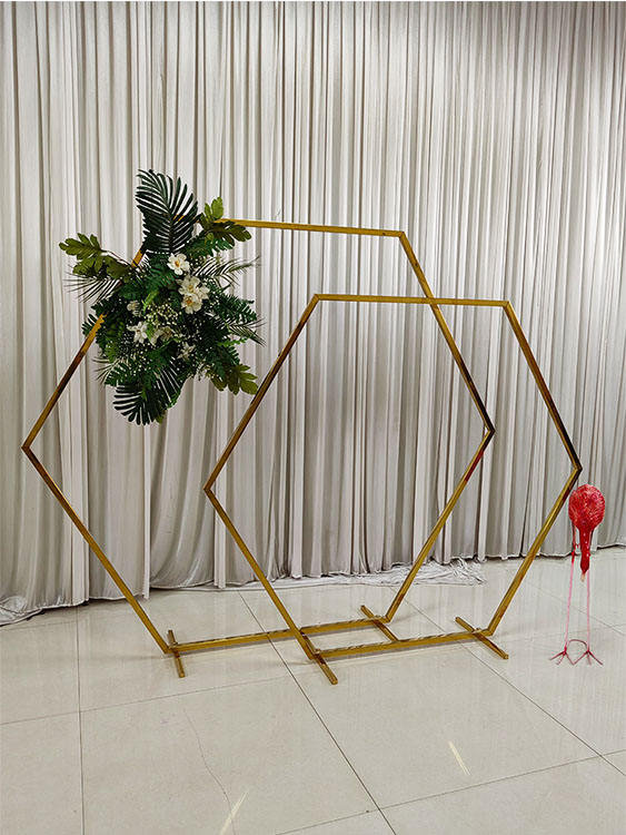 FURUN Gold Metal Wedding Arch Background Frame Stylish Hexagonal Shape for Decorations