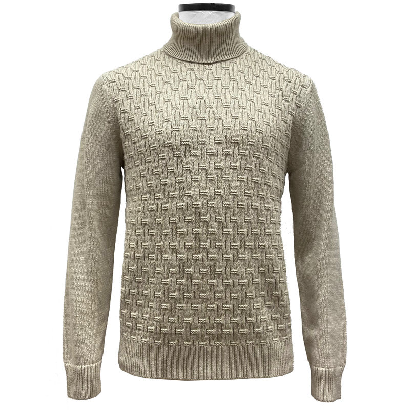 FW23 Men's Customized Long Sleeve Turtleneck Pullover Sweater Breathable Cable Knitted Cotton Acrylic Blend Winter Pattern