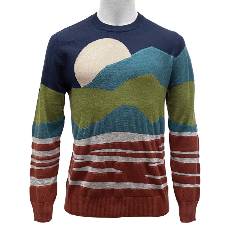 FW23 Men's Premium Trendy Cotton Merino Wool Pattern Knitted Machine Washable Long sleeve O Neck Pullover Sweater