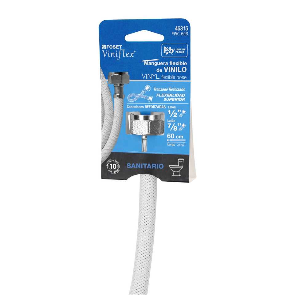 FWC-60B Drain White Vinyl Toilet Hose Braided Brass & EPDM 1/2' X 7/8' 60 cm for Bathroom Plumbing