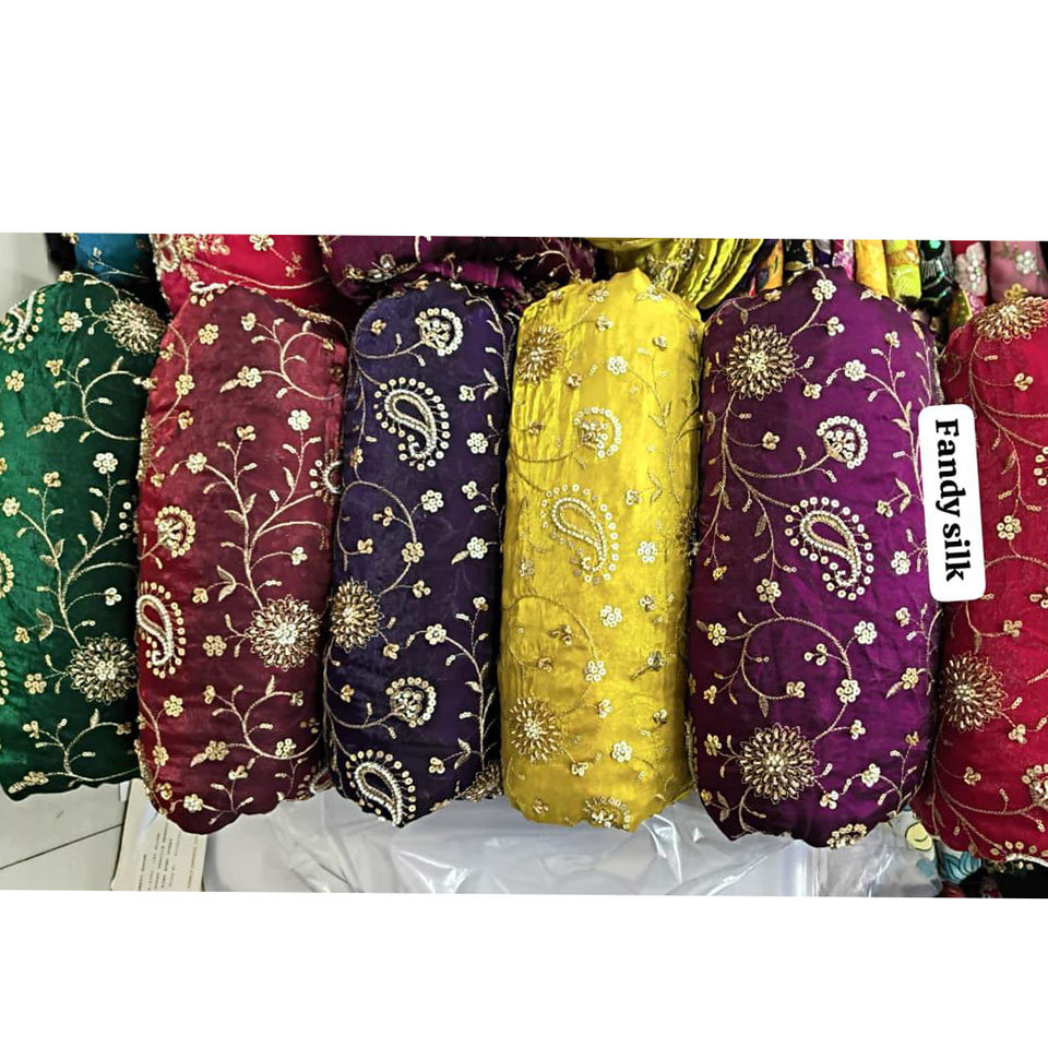 Fabric House Fandy Embroidery Work Fabric With Bids Work Fandy Silk Material For Dress Blouse And Lehenga