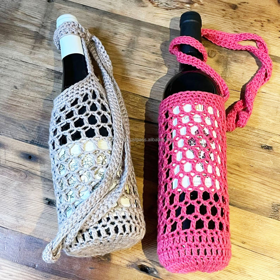 Fabulous Crochet Wine Bottle Holder with Handle Knitted Bottle Hanger Cross Body Water Bottle Cover with Strap with High Quality