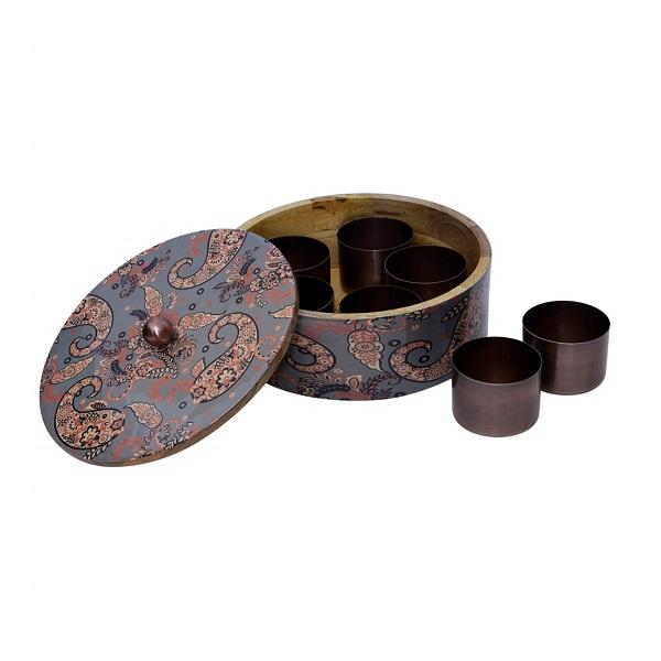 Fabulous Design Wooden Masala Box With 7 Container Jars Greatest Quality Customized Size Wooden Masala Box