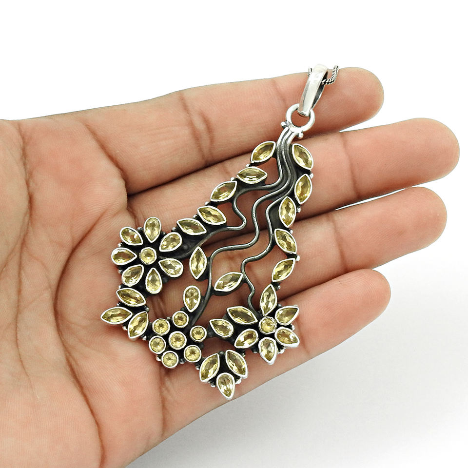 Fabulous Look 925 Sterling Silver Natural Citrine Gemstone Unique Design Pendant Handmade Bohemian Jewelry Wholesale Suppliers