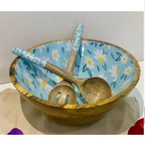 Fabulous Look Food Safe Wooden Bowl Enamel Finishing Fruits and Salad Serving Catering Use Wooden Bowl With Spoon