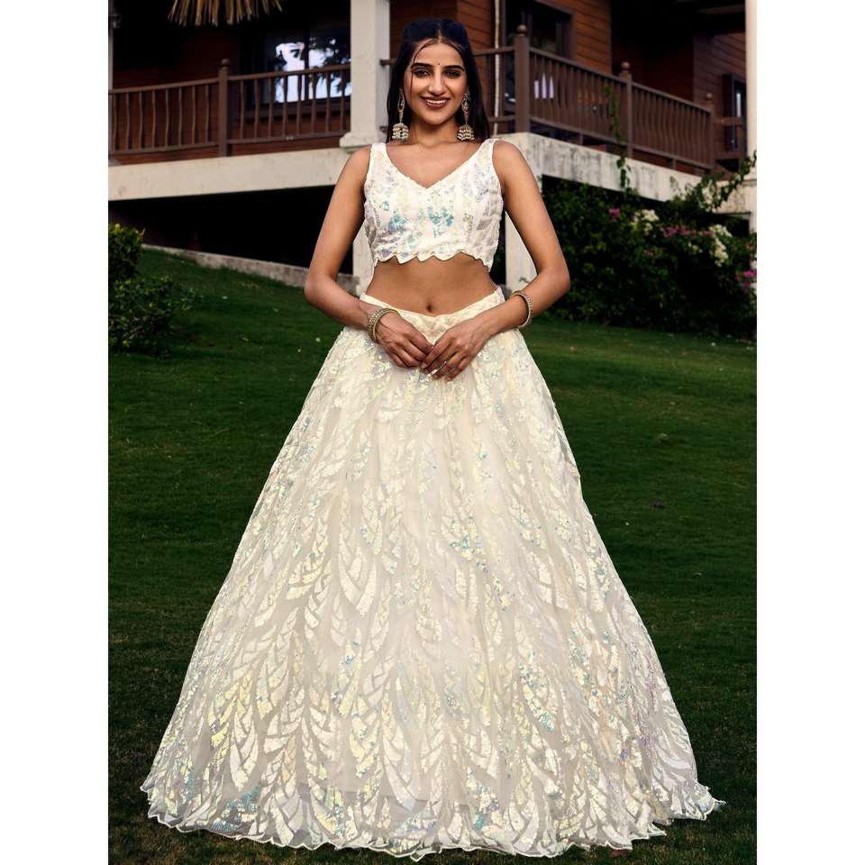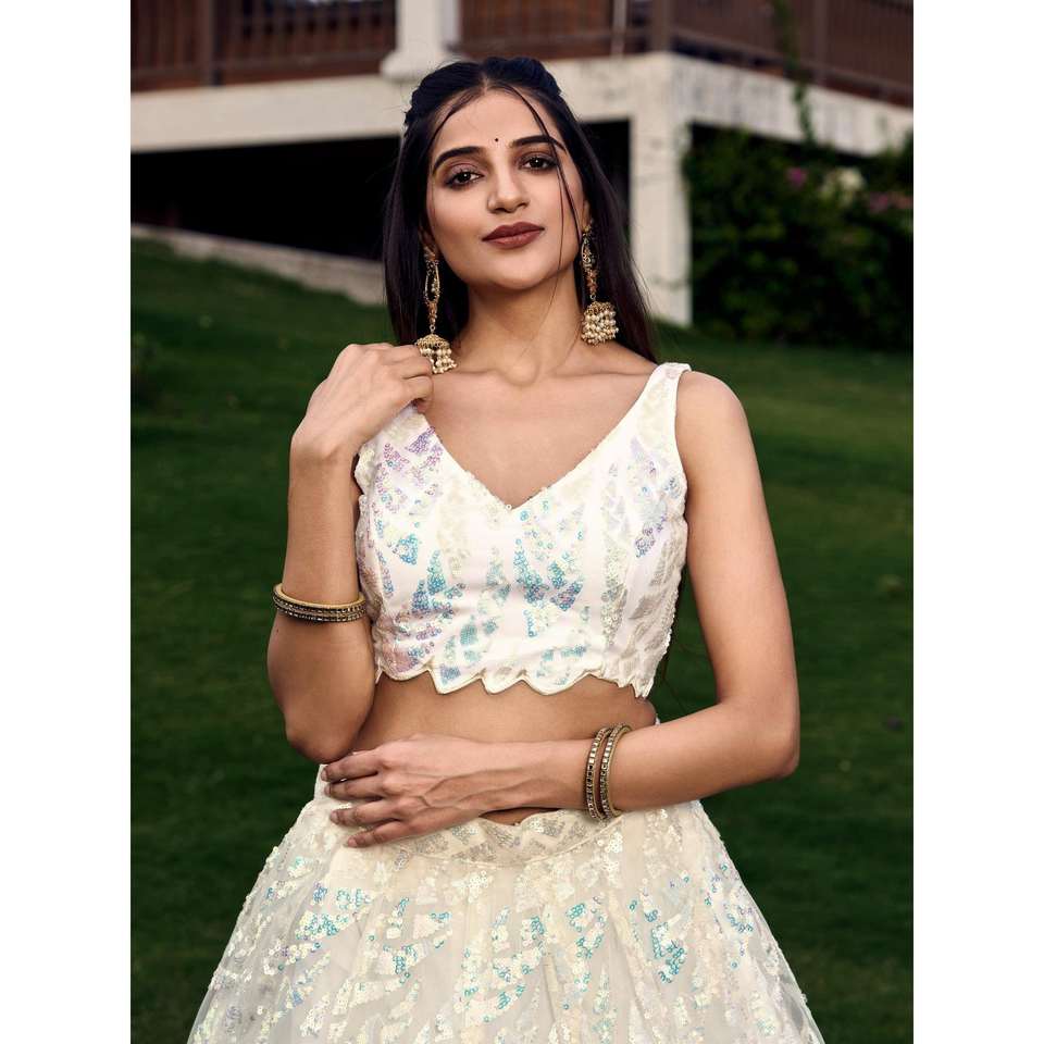 Fabulous Off-White Sequins Net Traditional Lehenga Choli With Dupatta