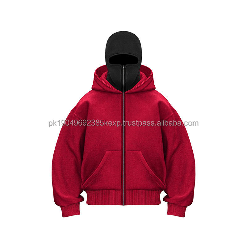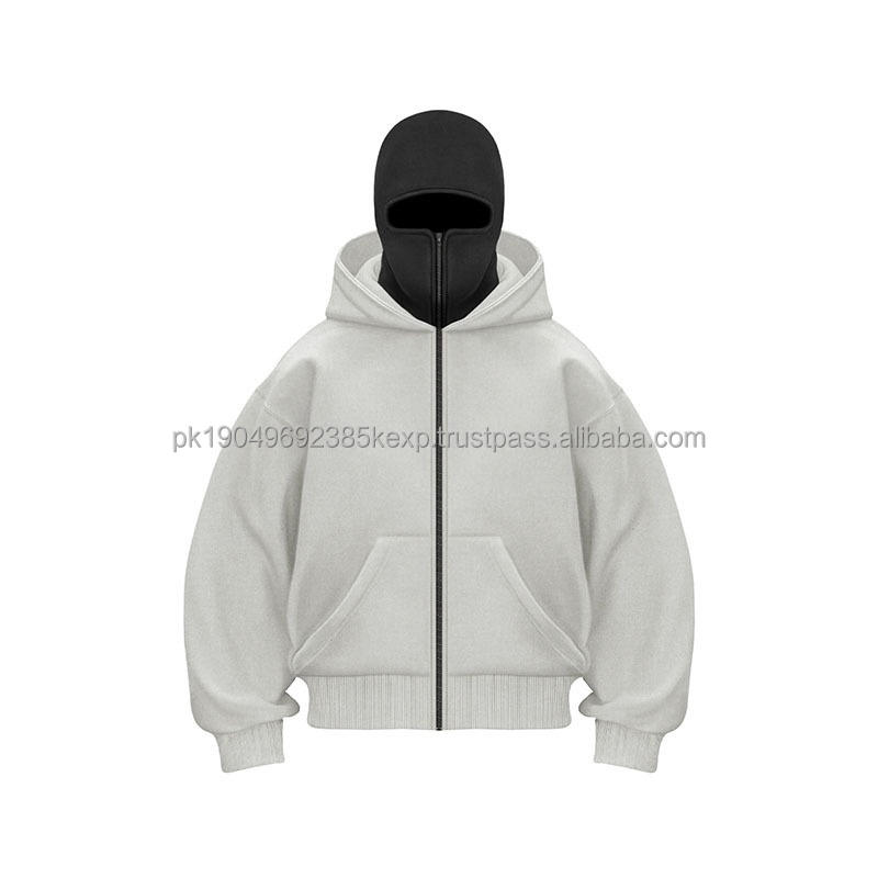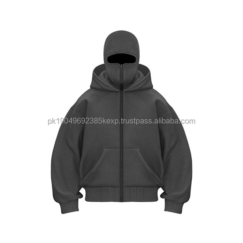 Face Full Heavyweight Mens Custom Washed Pastel Cotton 500 Gsm 400 1000 Balaclava Zip up Hoodie With Mask